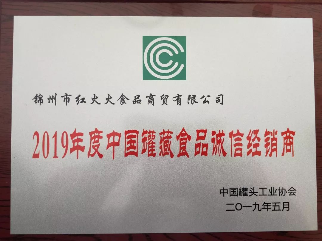 我公司經(jīng)銷商錦州紅火火商貿(mào)有限公司榮獲“2019年度中國罐藏食品誠信經(jīng)銷商”殊榮。